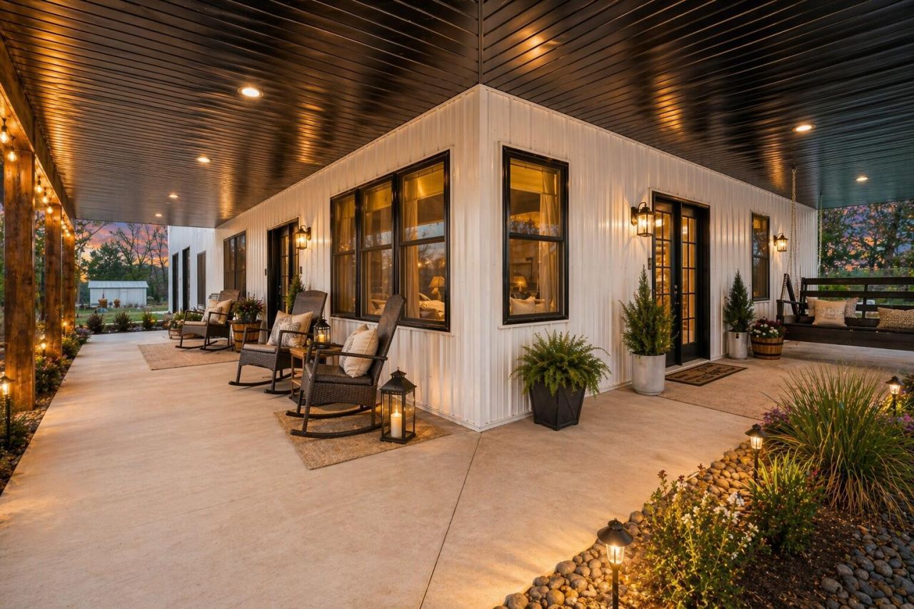 Luxury Barndominium Estate on 5.9 acres offering approx. 3,400 finished sq ft plus oversized commercial-grade shop. The open-concept main level features soaring ceilings, clerestory windows, and a dramatic great room flowing into the entertainers kitchen with oversized island and abundant cabinetry. The primary suite includes a large walk-in closet and spacious bath with tiled double-sink vanity and walk-in shower. Two additional bedrooms share a Jack-and-Jill bath, plus separate guest half bath. Upper loft provides flexible living space. In-floor heat and outdoor wood burner add comfort and efficiency. Expansive wraparound covered porch and large concrete patio enhance outdoor living. Low-maintenance exterior. Dedicated dog wash room in shop. Massive shop with tall ceilings and oversized overhead door offers exceptional versatility.